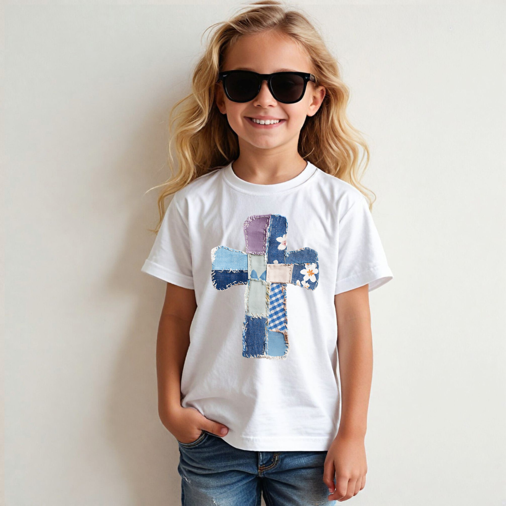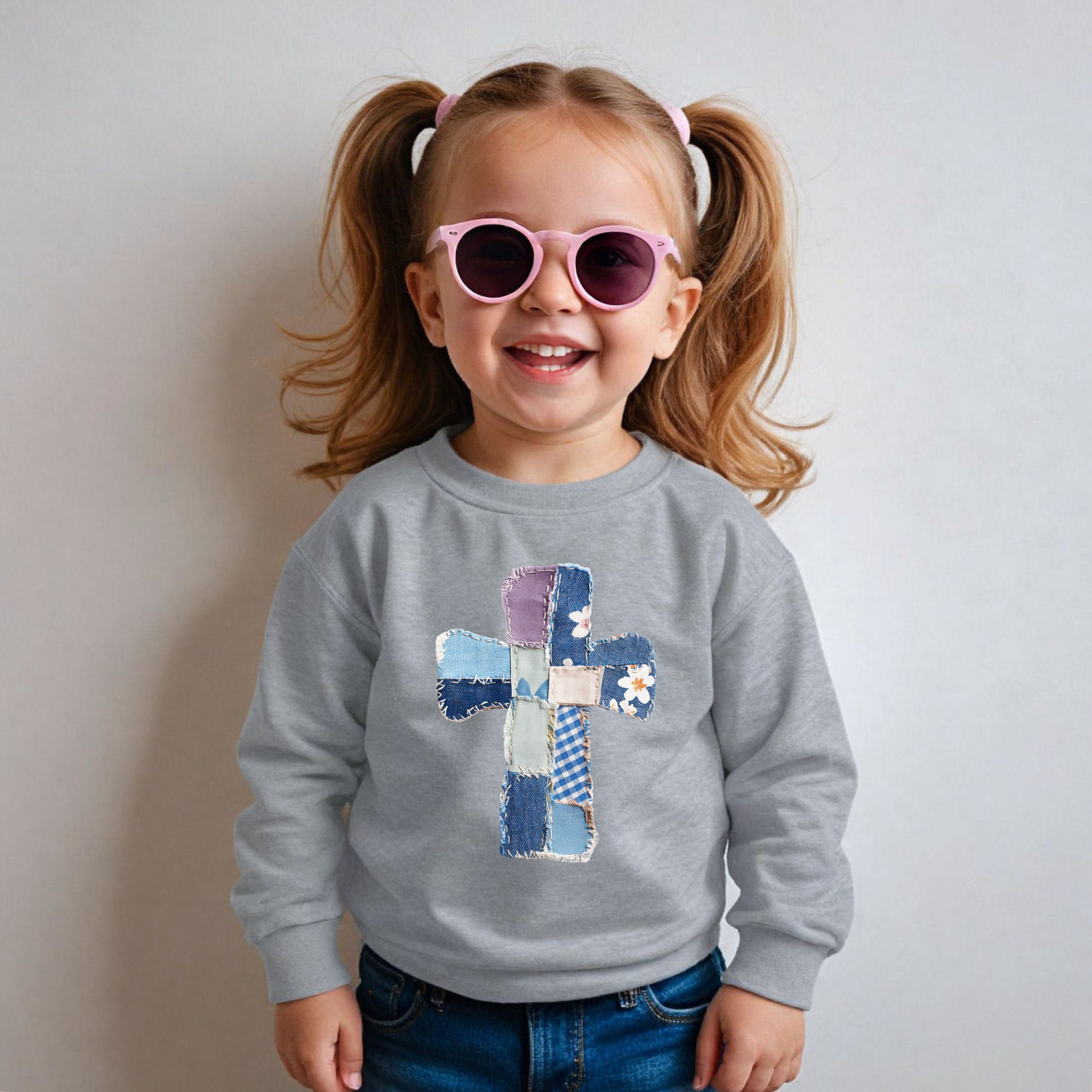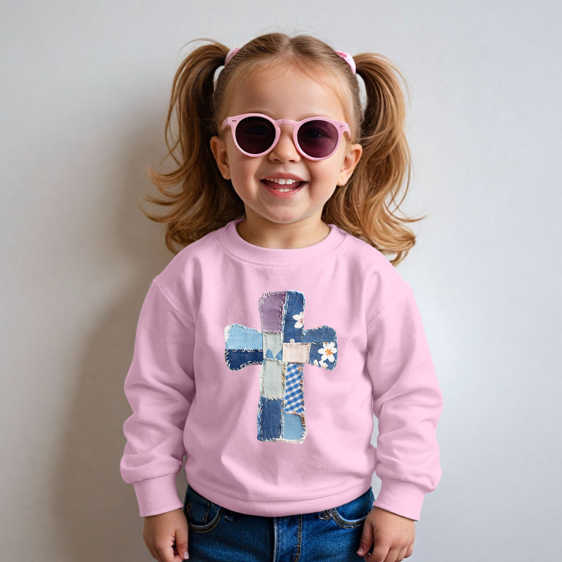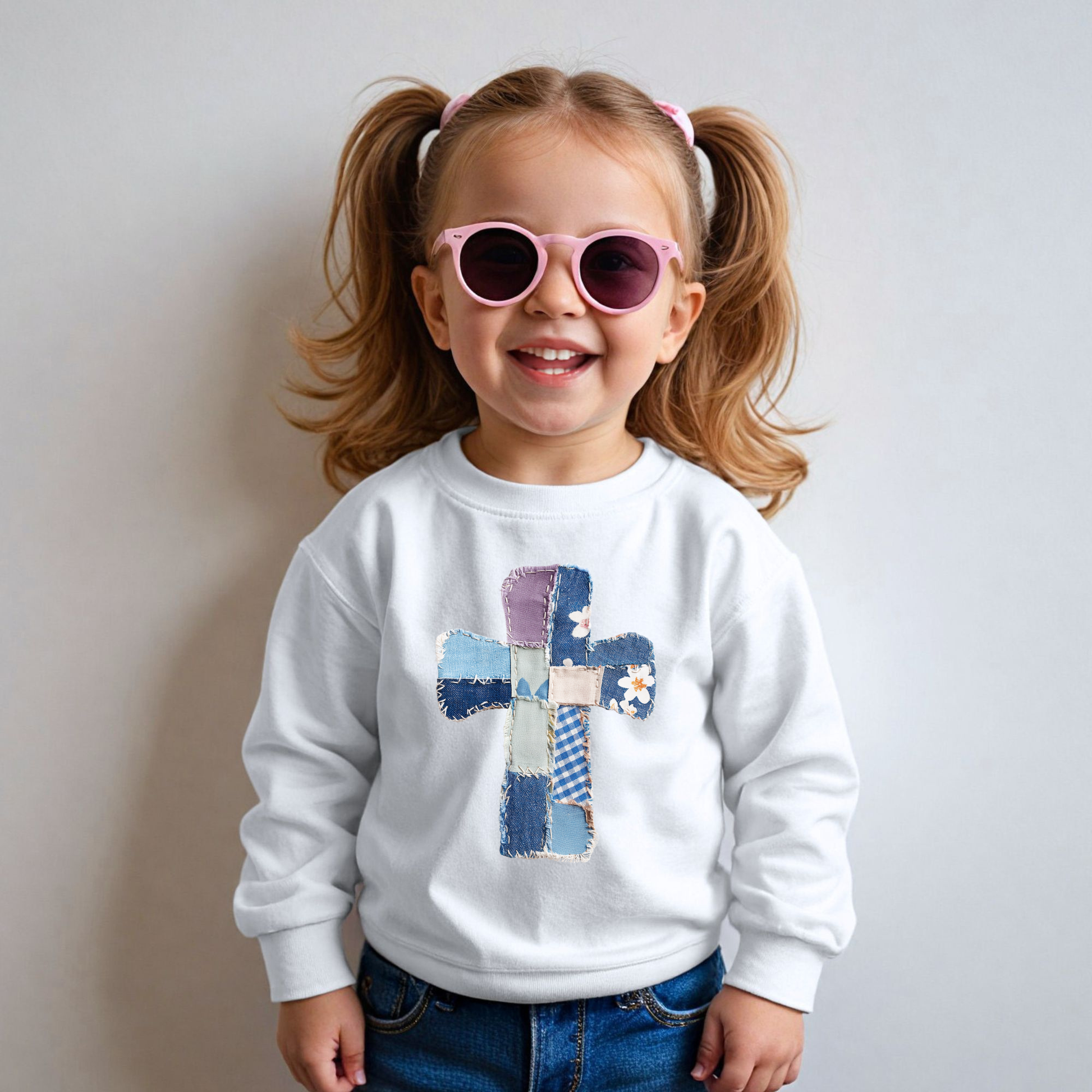 Youth Easter Faux Quilted Cross Sweatshirt or Tee