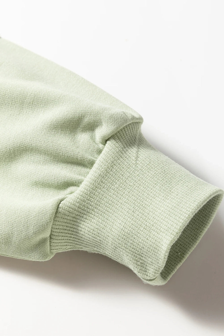 Sage green multimedia French Terry top. Round neckline. Sleeves feature floral and plaid fabric, raw edges and banded cuff. Relaxed fit. Can order true size. 65%Polyester+35%Cotton