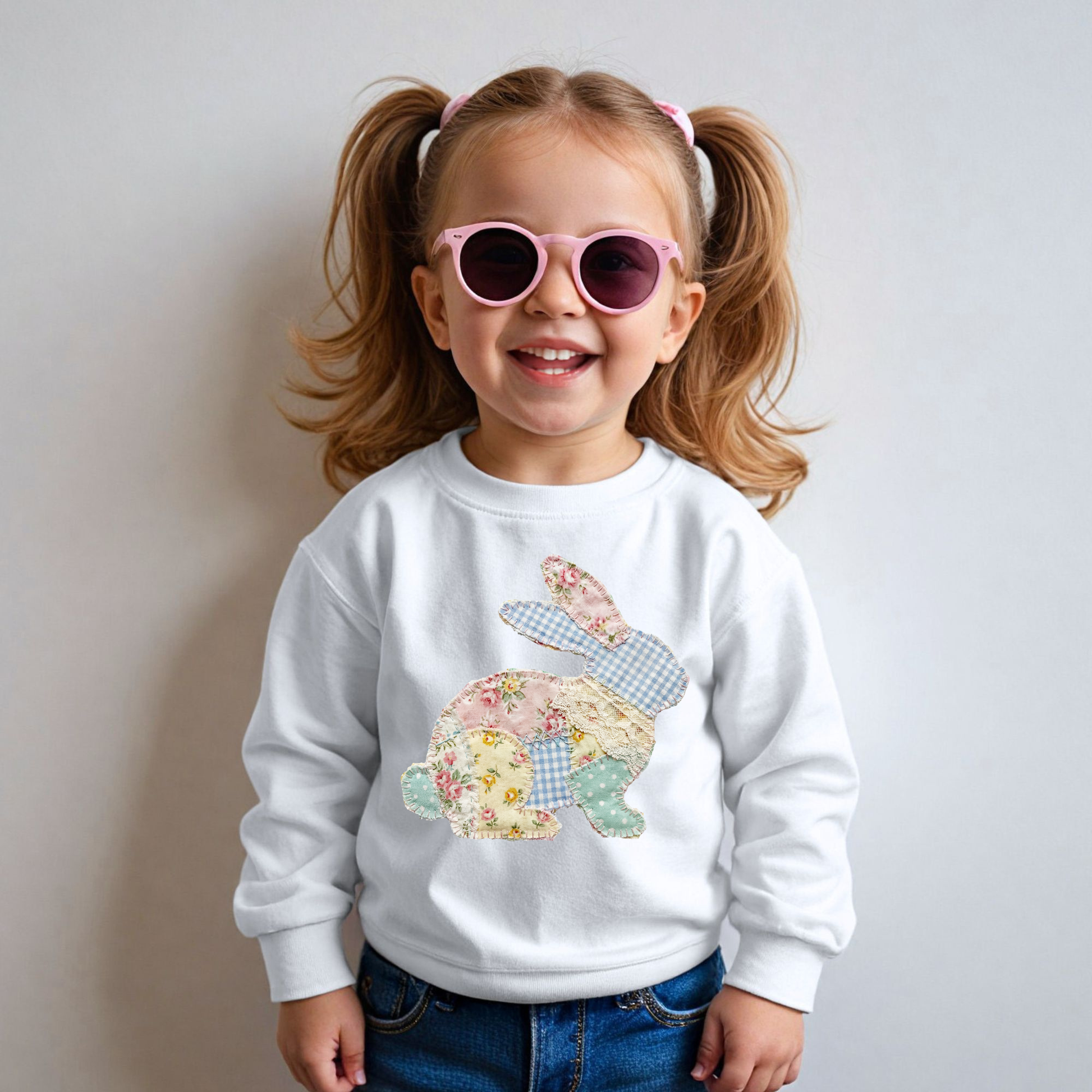 Hop into the season with our adorable Easter bunny design featuring charming faux quilted details. Available in a cozy sweatshirt or tee. Perfect for Easter celebrations, family gatherings, play dates, school, egg hunts or anyone who loves bunny-themed style. Choose your favorite fit and get ready to celebrate in comfort and cuteness! Multiple colors available. Short Sleeve tee is Comfort Colors.